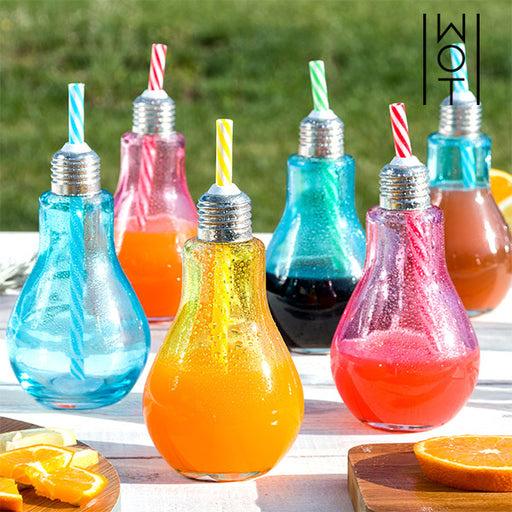 €10,60Wagon Trend Farbige Glühbirne Trinkgläser mit Strohhalmen 250 ml (6er Pack)