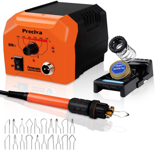 Original Preis €159,90Derzeitiger Preis €99,90Brandmalstation - Preciva Brennkolben Set mit 20-teilig Spitz, Temperatur Einstellbar 250℃ - 750 ℃, Brandmalkolben für Holz, Leder und Kork