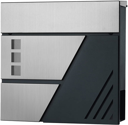 Upgraden Sie Ihre Wand: Geometrische Formen, schlichte Linien, ausgeschnittene Streifen, anthrazite Farbtöne – Dieser charmante Briefkasten verein...