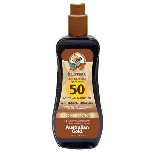 Alle Australian Gold LSF Sonnensprays in den dunklen Tuben enthalten hochwertige Naturbronzer. Das Australian Gold LSF 50 Spray Gel mit Bronzern S...