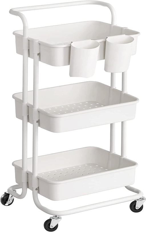 Original Preis €79,90Derzeitiger Preis €64,90Rollwagen mit 3 Ebenen, Servierwagen aus Metall, Küchenwagen, Küchenregal mit Griffen, 2 Bremsen, einfacher Aufbau, für Malutensilien, Schlafzimmer