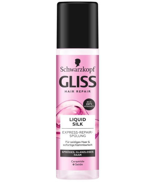 Liquid Silk: Ist die Haaroberfläche aufgeraut, wirkt das Haar spröde und glanzlos. Das Gliss Spray bietet intensive Pflege, um die Haarfaser zu glä...