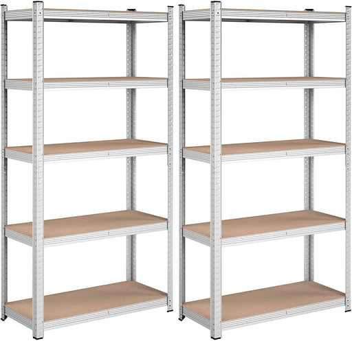 Original Preis €139,90Derzeitiger Preis €119,90Schwerlastregal, 2er Set, Bücherregal, Lagerregal, Standregal, 5 Ablagen, 150 x 75 x 30 cm, bis 400 kg belastbar, verstellbare Ablagen