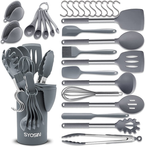 Original Preis €59,90Derzeitiger Preis €44,90Silikon Kochgeschirr Set, 30 Teiliges Silikon Küchenhelfer - Antihaft, Hitzebeständiger Silikonspatel Set, BPA Frei, Silikongriff aus Edelstahl