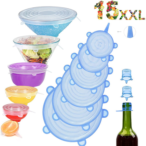 Original Preis €28,90Derzeitiger Preis €23,90Silikondeckel,15er Set Verschiedenen Größen Dehnbar Silikondeckel Stretch Deckel Wiederverwendbar für SchüSseln, TöPfe, GläSer, Dosen, Becher