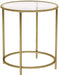 Beistelltisch rund, Glastisch mit goldenem Metallgestell, Kleiner Couchtisch, Nachttisch, Sofatisch, Balkon, Robustes Hartglas, dekorativ, Gold