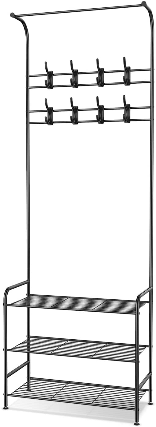 Original Preis €119,90Derzeitiger Preis €89,90Garderobenständer Kleiderständer Garderobe Metall mit Schuhregal 3 Ablagen mit 16 Hakenaus bis 30kg Schwarz