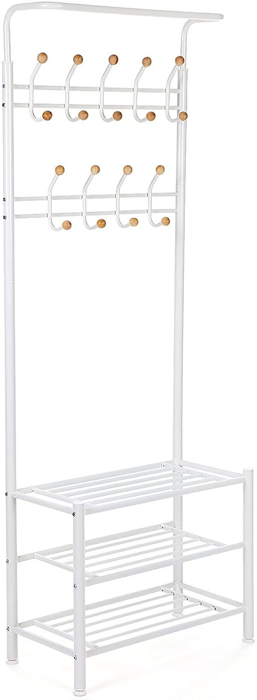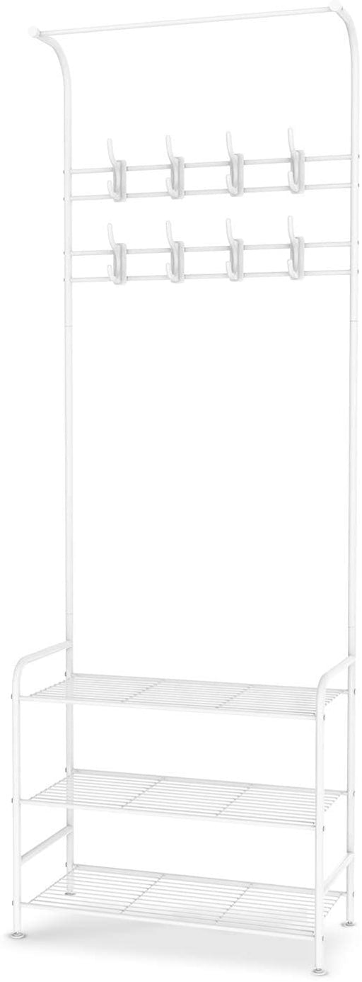 Original Preis €119,90Derzeitiger Preis €89,90Garderobenständer Kleiderständer Garderobe Metall mit Schuhregal 3 Ablagen mit 8 Hakenaus bis 30kg Weiß