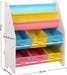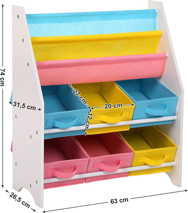 Kinderregal kleines Bücherregal Spielzeugregal Weißes Aufbewahrungsregal mit bunten Aufbewahrungsboxen Kindermöbel 63 x 74 x 26,5 cm