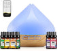 500ML Aroma Diffuser, Diffuser mit 6x10ml Diffuser Ätherische Öle Set, 14-Farben-LED, Fernbedienung mit Timer-Einstellung, Auto-Off, Luftbefeuchter