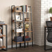 Bücherregal, Leiterregal, offen, mit 4 Ebenen, Metallgestell, für Wohnzimmer, Schlafzimmer, Küche, Arbeitszimmer, Büro, Industrie-Design, vintagebraun