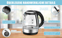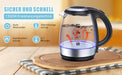 - Mehr Sicherheit: Hergestellt aus importierter britischer Thermostat-Technologie, erweiterte automatische Abschaltung und Schutz für Wasserkocher, 100 % elektrische Sicherheit. Es schaltet sich automatisch innerhalb von 30 Sekunden ab, sobald das Wasser kocht oder kein Wasser im Inneren vorhanden ist. Besorgniserregen!