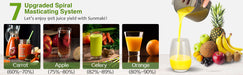 • Sunmaki Entsafter gemüse und obst,Er verwendet die neuesten Spiralmahlstäbe, harte, hochwertige Materialien und eine langsame Mahl- und Pressform, damit jede Zelle der Frucht gut genutzt wird, sowie das Vitamin C und die hohe Zellulose der Frucht sind voll erhalten.