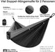 - đđă2 PERSON GROSSE CAMPING-HĂ€ngematteă KUYOU Camping HĂ€ngematten haben eine GröĂe von 290 x 140 cm und tragen sicher bis zu 350 kg. Genug fĂŒr mehr als 2 Personen! Die utral leichte HĂ€ngematte wiegt nur 790 g und ist leichter fĂŒr unterwegs. 2 freie PfĂ€hle, um die StabilitĂ€t der HĂ€ngematte zu erhöhen und den Raum der HĂ€ngematte zu erweitern, um den BedĂŒrfnissen mehrerer Personen gerecht zu werden.