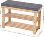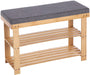 Schuhbank aus Bambus, Schuhregal mit 2 Regalebenen, Sitzbank, für Flur, Wohnzimmer, Sitzfläche bis 150 kg belastbar, 71 x 29 x 49 cm, naturfarben-grau