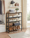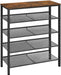 Schuhregal, Schuhablage mit 5 Ebenen und großzügiger Oberfläche für Taschen, für den Eingangsbereich, Flur, Metall, Industrie-Design, vintagebraun