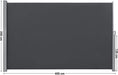 Seitenmarkise, ausziehbar, 200 x 400 cm, Sichtschutz, Sonnenschutz, Blickdicht, Seitenrollo, für Balkon, Terrasse, Garten, anthrazit