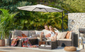 - Mittagessen im Garten? Kaffeepause auf der Terrasse? Natürlich kein Problem! Das Schirmtuch aus 180 g/m² Polyestergewebe bietet einen hervorragenden UV-Schutz bis UPF 50+: Es hält 98% der UV-Strahlen problemlos ab und schützt Ihre Haut vor Sonnenbrand!