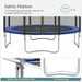 • PRÄVENTIVMAßNAHMEN: Wir alle würden es im Falle eines Sturzes doch bevorzugen, gegen ein weiches Netz oder ein Polster zu prallen anstatt gegen eine harte Metallstange. Daher sind die Stangen dieses Trampolins mit einer weichen Schaumstoffpolsterung versehen. Das dichte, 1,8 m hohe Sicherheitsnetz sorgt zudem dafür, dass Sie keinen Abflug machen