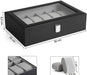 - Betont die Eleganz Ihrer Uhren: Transparenter Glasdeckel, graues Innenfutter, schwarzer PU-Bezug, glänzender Metallverschluss – Durch diesen Uhrenkasten geben Sie Ihrer Uhrensammlung einen Ehrenplatz sowie einen optimalen Aufbewahrungsort
