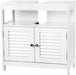 - 2 um 180° schwenkbare Lamellentüren - Die formschönen Lamellentüren mit Metallgriffen vermittelnströmen einen gemütlichen Landhausstil, zeitloses Weiß passt zu jedem Einrichtungsstil; gleichtzeitig sorgen sie für eine gute Durchlüftung und verhindern somit die Schimmelgefahr und muffige Gerüche