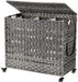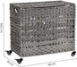 Wäschekorb handgeflochten, Wäschesammler aus Polyrattan, mit 3 Fächern, Deckel und Griffen, herausnehmbare Taschen, Wohnzimmer, Schlafzimmer