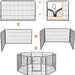 Mit diesem Welpenlaufstall fühlt sich Ihr Haustier stets sicher und geborgen! Dank der durchdachten Konstruktion lässt sich dieser Auslauf auch ohne Werkzeuge schnell auf- und abbauen. Die Gitterelemente werden mithilfe von mehreren Verbindungsstangen einfach miteinander verbunden. Wenn Sie das Freigehege im Garten aufbauen möchten, können Sie die Verbindungsstangen in den Boden stecken, um die Stabilität des Geheges zu erhöhen. Die Tür des Auslaufs ist mit 2 L-förmigen Riegeln ausgestattet, was für zusätzliche Sicherheit sorgt. Möchten Sie ein größeres Gehege für Ihre pelzigen Freuden schaffen? Je mehr Gitterelemente Sie haben, desto größer ist das Gehege Ihrer Welpen!