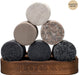 Unsere 6 Kühlsteine aus Granit fallen in einem Hartholztablett auf, das auch dazu verwendet werden kann, um die Steine im Gefrierfach aufzubewahren. Es ist exklusiv und praktisch!