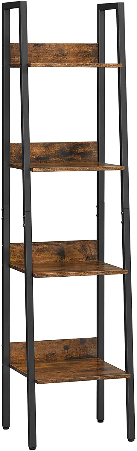 Original Preis €119,90Derzeitiger Preis €99,90Bücherregal, Leiterregal, offen, mit 4 Ebenen, Metallgestell, für Wohnzimmer, Schlafzimmer, Küche, Arbeitszimmer, Büro, Industrie-Design, vintagebraun