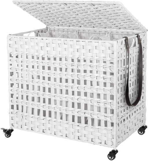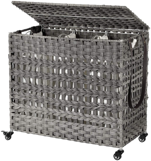 Original Preis €129,90Derzeitiger Preis €99,90Wäschekorb handgeflochten, Wäschesammler aus Polyrattan, mit 3 Fächern, Deckel und Griffen, herausnehmbare Taschen, Wohnzimmer, Schlafzimmer