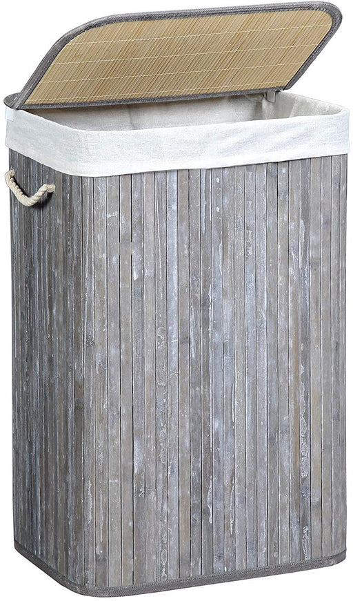 Original Preis €69,90Derzeitiger Preis €49,90Wäschekorb 72 L, Wäschesammler aus Bambus, Wäschetruhe mit Griffen, Deckel mit Clips, faltbar, Wäschesack herausnehmbar, Vintage, grau
