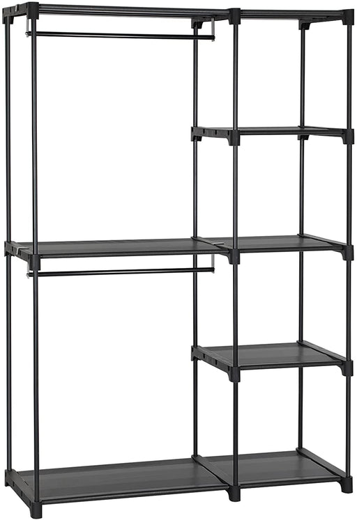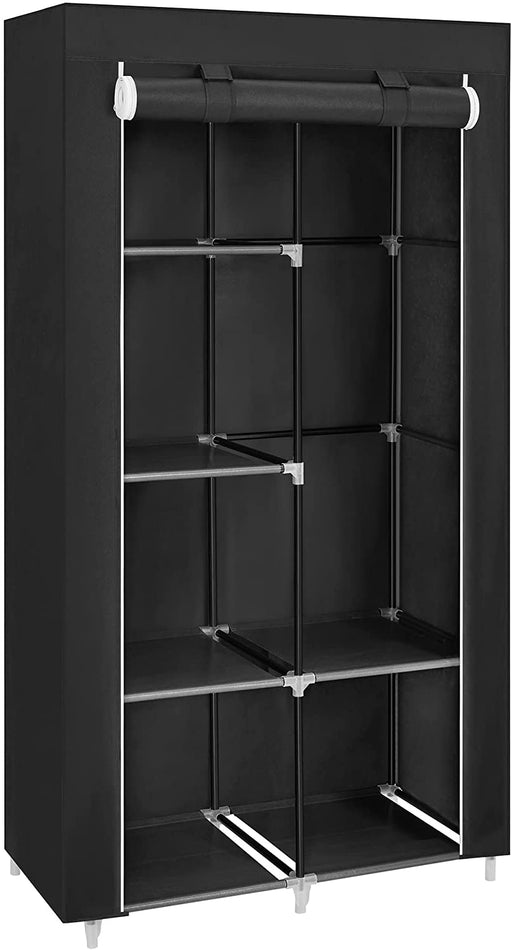 Original Preis €79,90Derzeitiger Preis €59,90Stoffschrank, Kleiderschrank, 2 Kleiderstangen, 6 Ablagen, verschiedene Aufbaumöglichkeiten, 88 x 45 x 168 cm, für Schlafzimmer, Ankleidezimmer, schwarz