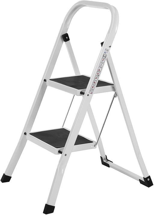 Original Preis €89,90Derzeitiger Preis €69,90Trittleiter, Leiter mit 2 Stufen, Klapptritt, Klappsicherung, einfach zu verstauen, bis 150 kg belastbar, vom TÜV GS nach EN14183 zertifiziert, weiß