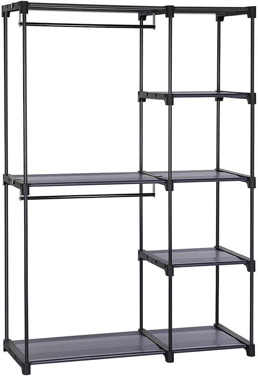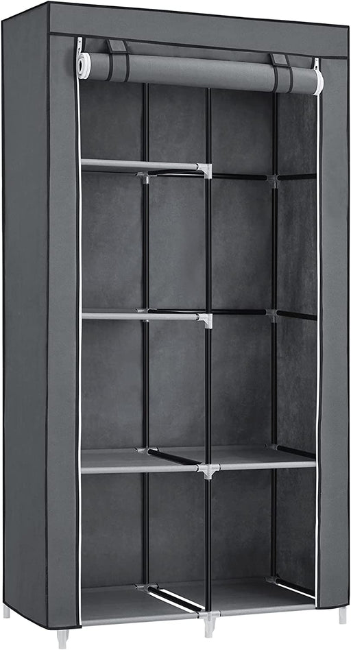 Original Preis €79,90Derzeitiger Preis €59,90Stoffschrank, Kleiderschrank, 2 Kleiderstangen, 6 Ablagen, verschiedene Aufbaumöglichkeiten, 88 x 45 x 168 cm, für Schlafzimmer, Ankleidezimmer, grau