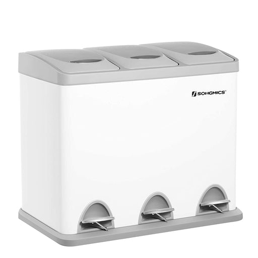 Original Preis €129,90Derzeitiger Preis €99,90Mülleimer für die Küche, Treteimer aus Metall, 3-in-1 Abfalleimer, 24 Liter, Mülltrennung, Mülltrennsystem, einfach zu reinigen, Stahl, weiß-grau