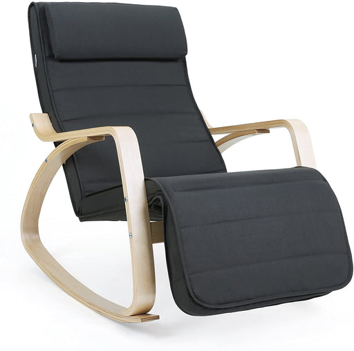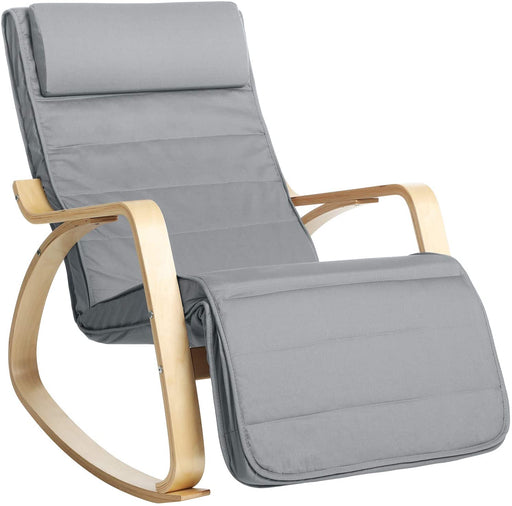 Original Preis €189,90Derzeitiger Preis €149,90Schaukelstuhl, mit Armlehnen aus Birkenholz, Schaukelsessel, 5-stufig verstellbare Fußstütze, Relaxstuhl, bis 150 kg belastbar, Wohnzimmer