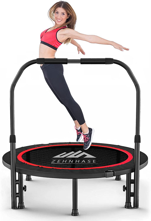 【Fitness Trampolin 】 Das 38 Zoll Erwachsene Trampolin ist mit robusten elastischen Kordeln ausgestattet. Verstellbare Füße und Handlauf erhöhen di...