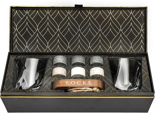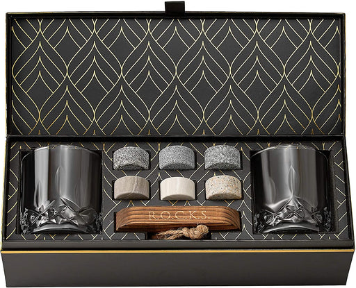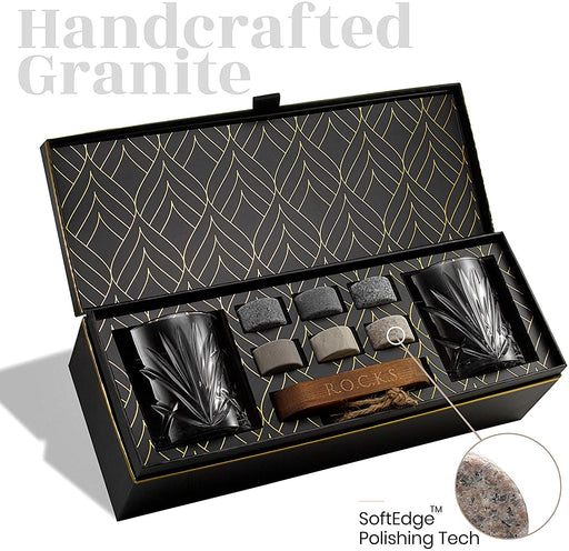 Original Preis €119,90Derzeitiger Preis €79,90Whiskey Steine Geschenkset - 6 Handgefertigte Premium-Granitsteine, 2 außergewöhnliche Kristallgläser, Präsentations- und Aufbewahrungstablett