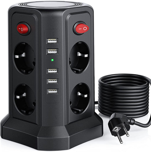 Original Preis €89,90Derzeitiger Preis €59,908 Fach Steckdosenleiste mit 3M Kabel, Mehrfachsteckdose mit 5 USB 12W, Steckdosenturm mit 4 Schalter, Steckdosenleiste überspannungsschutz