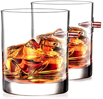 Original Preis €59,90Derzeitiger Preis €44,90Whisky Gläser 2er Set, Whiskey Gläser mit Realem Geschoß Cal.308, Old Fashioned Handgeblasen Whiskygläser, Kristallglas Geschenkidee für Männer