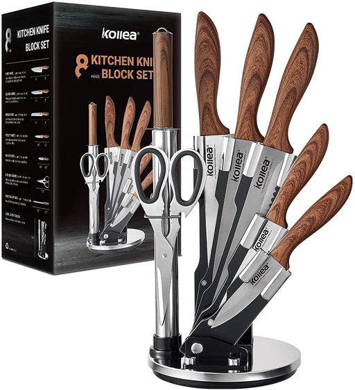 Original Preis €79,90Derzeitiger Preis €49,90Küchenmesser Set, 8-teiliges professionelles Kochmesser Set mit Spin Block, Küchenmesser aus rostfreiem Stahl mit Messerschärfer, Küchenschere