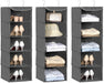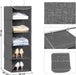 Hängeregal, Kleiderschrank-Organizer, Hängeaufbewahrung, für Kleidung, platzsparend und faltbar, Metallhaken, Bambus-Einsätze, leinenartige Textur, grau