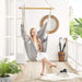 - Wo möchten Sie den Hängestuhl befestigen? An einem Baum, am Dachbalken oder mithilfe eines Hängesesselgestells? Suchen Sie sich einfach einen Platz aus, der mitgelieferte Karabinerhaken und die Metallkette helfen Ihnen, den Sessel zu befestigen