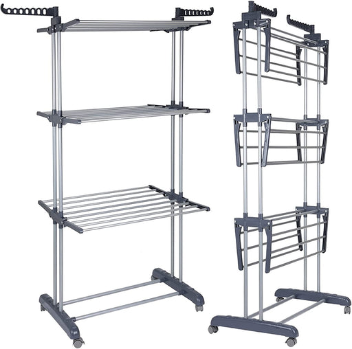 Original Preis €129,90Derzeitiger Preis €99,90Stabil Wäscheständer Turmwäschetrockner mit 4 drehbar Rollen und 3 Ablagen Trockenständer, Klappbar 172CM hoch Kleiderständer