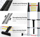 3,8M Teleskopleiter mit Stabilisator, Aluminium Ausziehleiter Hohe Mehrzweckleiter, 150 kg Belastbarkeit Schwarz