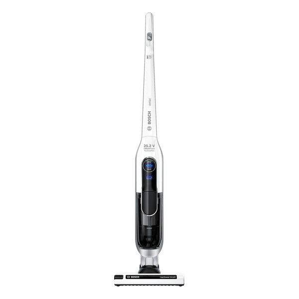 Bosch BCH65RT25. Dust container type: Bagless, Produktfarbe: White, Dust capacity: 0,9 l. Reinigungsart: Trocknen, Dirt separating method: Filtering. Energiequelle: Battery, Batterietechnologie: Lithium-Ion (Li-Ion), Akkuspannung: 25,2 V. Breite: 285 mm, Tiefe: 185 mm, Höhe: 1160 mm