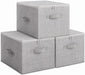 Aufbewahrungsbox mit Deckel, 3er Set, faltbare Stoffbox mit Griffen, Aufbewahrung für Kleidung und Spiegelzeug, hellgrau