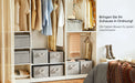 • „Unsere Montage ist... super schnell! Klappen Sie einfach die Stoffboxen auf, legen Sie den Kartonboden ein und bringen Sie die Griffe an! So, jetzt sind wir sofort bereit, Ihnen beim Aufräumen zu helfen!“