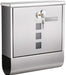 Briefkasten aus Edelstahl, Wandbriefkasten, Schloss mit Kupfer-Schließzylinder, Zeitungsfach, Sichtfenster, Namensschild-Halter, einfache Montage