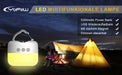 Diese Camping Laterne ist eine ideale Wahl für die Verwendung zu Hause, im Büro und sogar in der Umgebung ohne Steckdose, wie beim Camping und Picknick daraußen. Nutzbar als Laterne, Aufladestation oder Notfallleuchte. Kann man diese Camping Lampe irgendwo stellen, um Ihres Möbel zu passen, mit keiner Sorge dafür, dass Babys über die Leitung der Lampe stolpern. Aussdem benötigt die Campinglampe minimalen Platz im Gepäck.